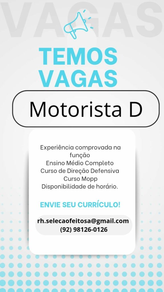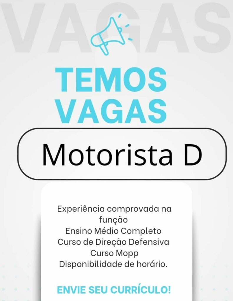 Empresa seleciona Motorista, Líder; Envie seu currículo!