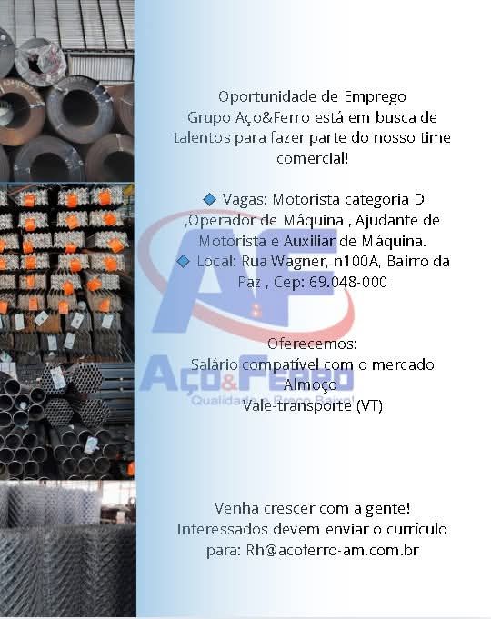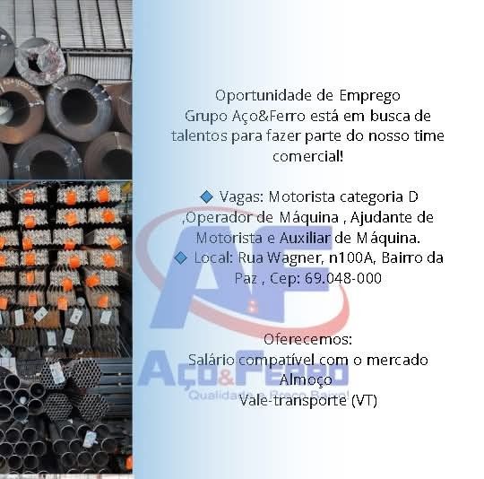 Empresa seleciona Motorista,Operador de máquina, Ajudante de Motorista, Auxiliar de máquina; Envie seu currículo!