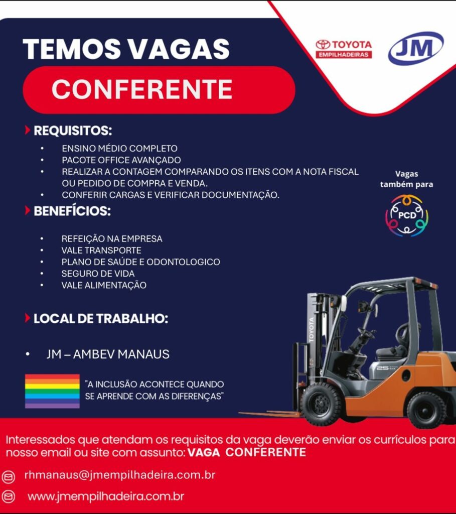 Empresa seleciona para vaga de Conferente; Envie seu currículo!