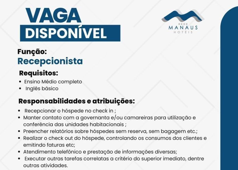 • Hospital Delphina Aziz abre vagas para assistente social, maqueiro e recepcionista em Manaus