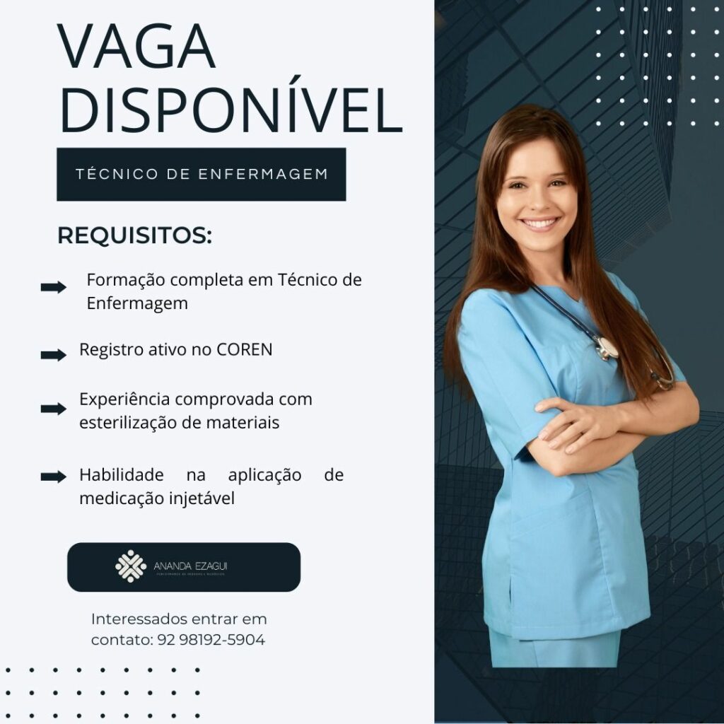 Empresa seleciona Técnico de enfermagem; Envie seu currículo!
