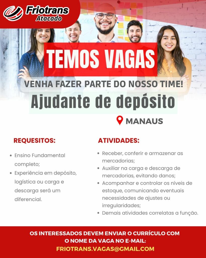 Friotrans Atacado seleciona Ajudante de depósito; Envie seu currículo!