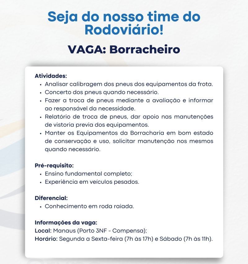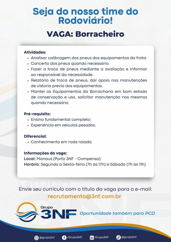 Grupo 3NF seleciona Borracheiro; Envie seu currículo!