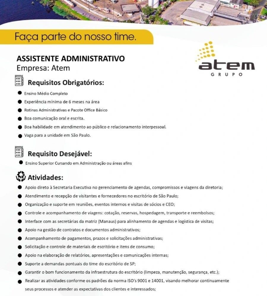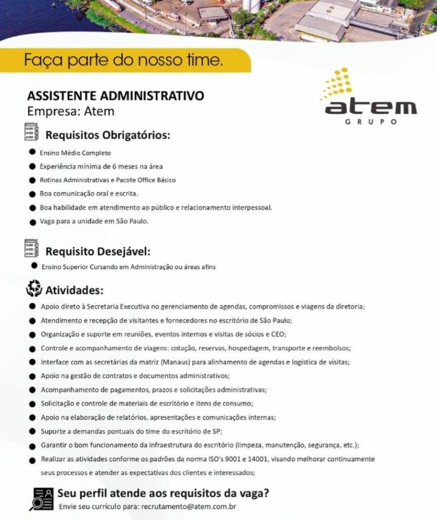 Grupo Atem seleciona Assistente administrativo; Envie seu currículo!