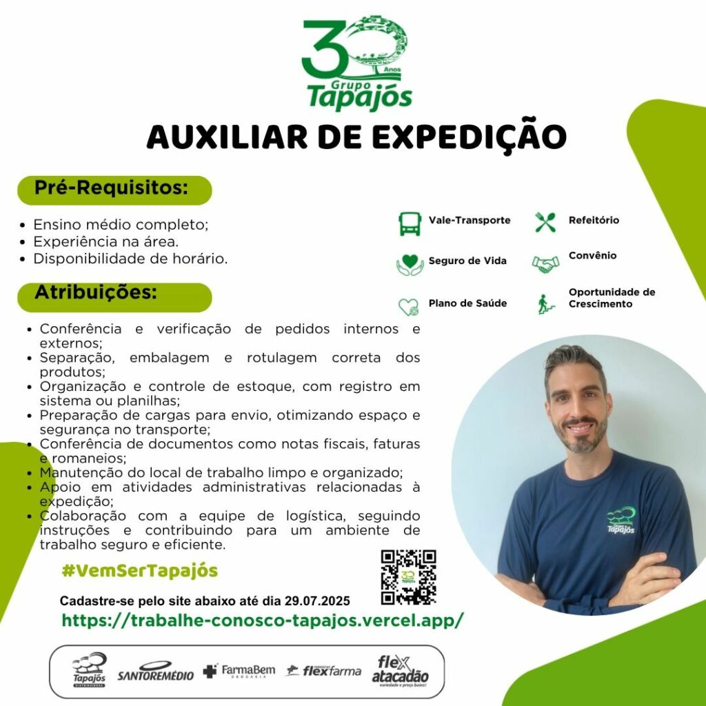 Grupo Tapajós está selecionando Auxiliar de expedição; Envie seu currículo!