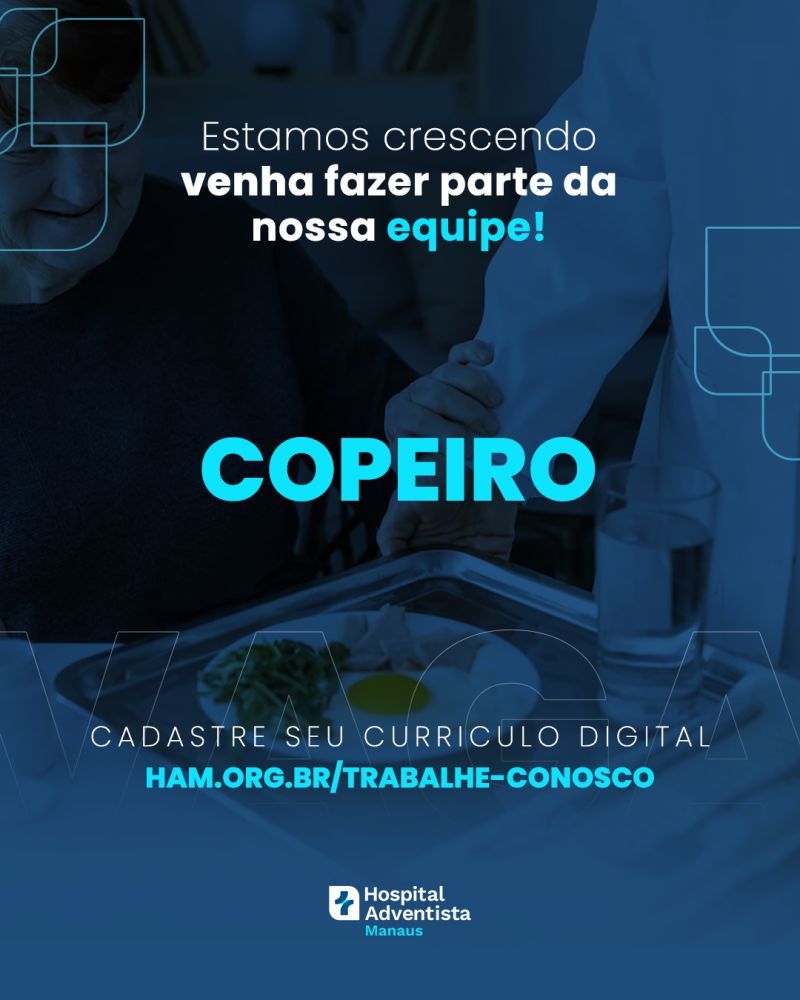 Hospital está selecionando Copeiro; Envie seu currículo!
