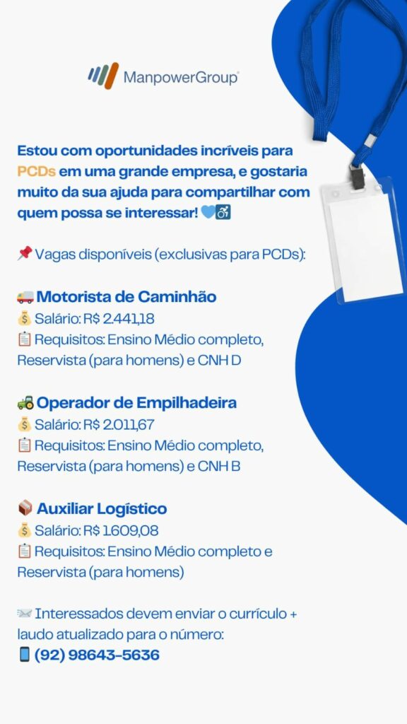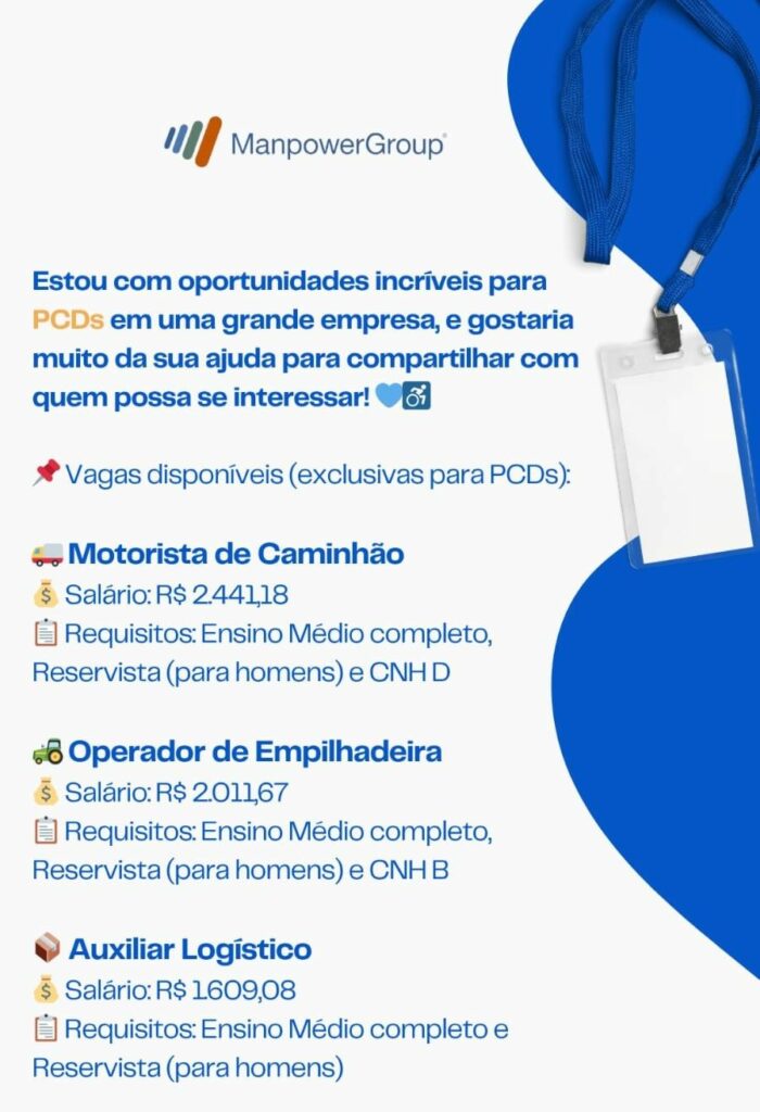 Manpower Group seleciona Motorista de caminhão, Operador de empilhadeira, Auxiliar logístico; Envie seu currículo!