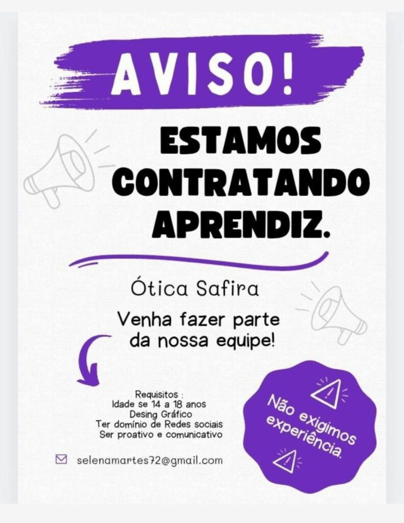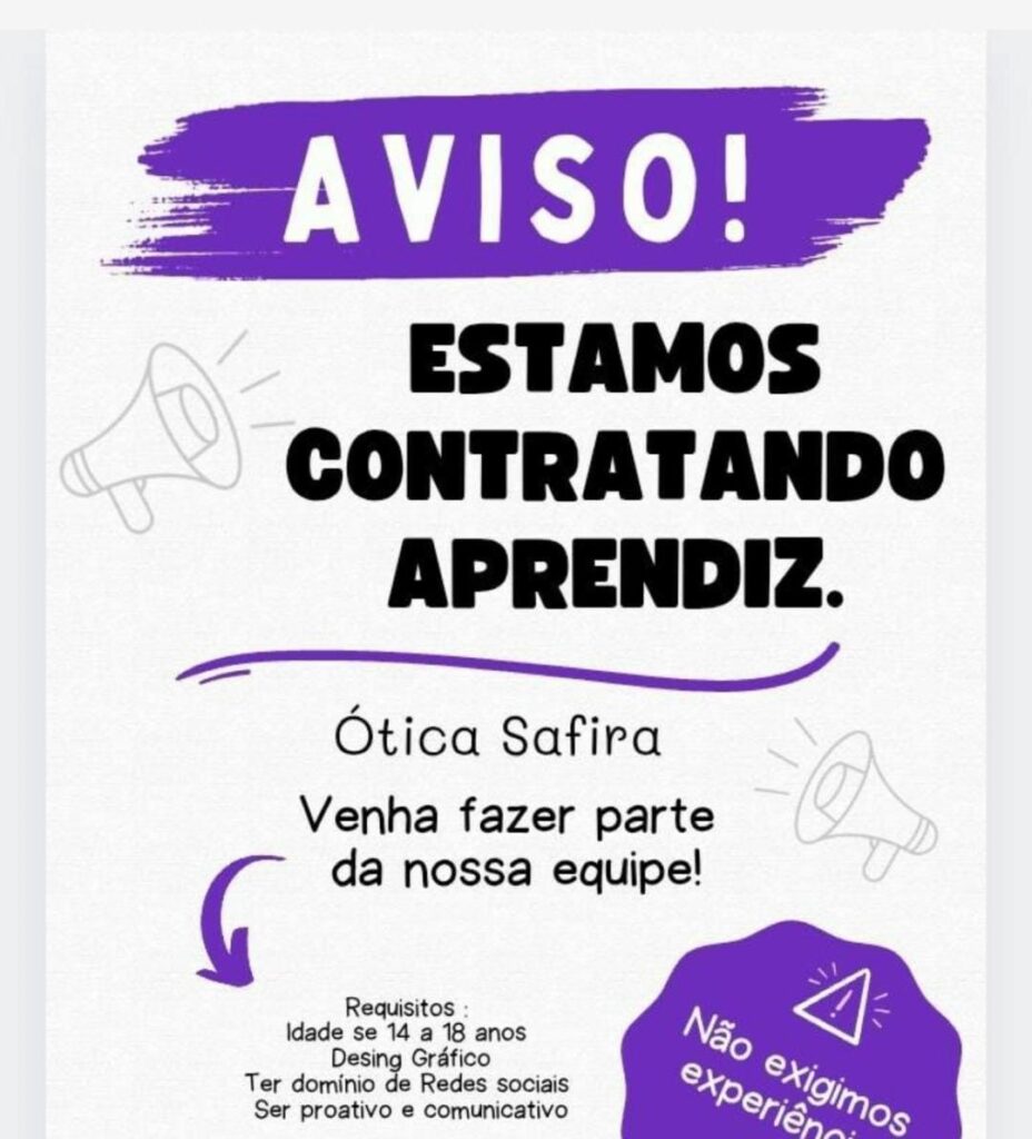 Ótica está selecionando Aprendiz; Envie seu currículo!