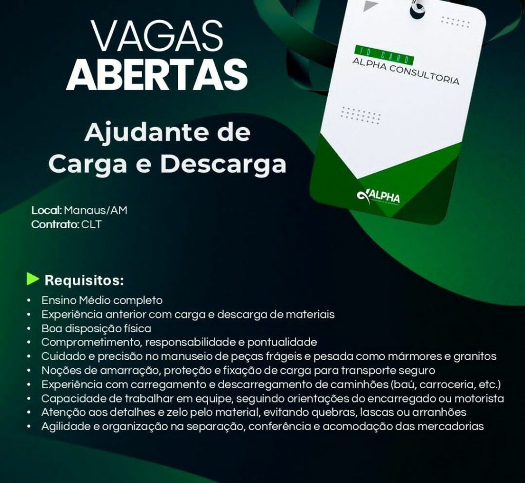 Rh está selecionando Ajudante de carga e descarga; Envie seu currículo!
