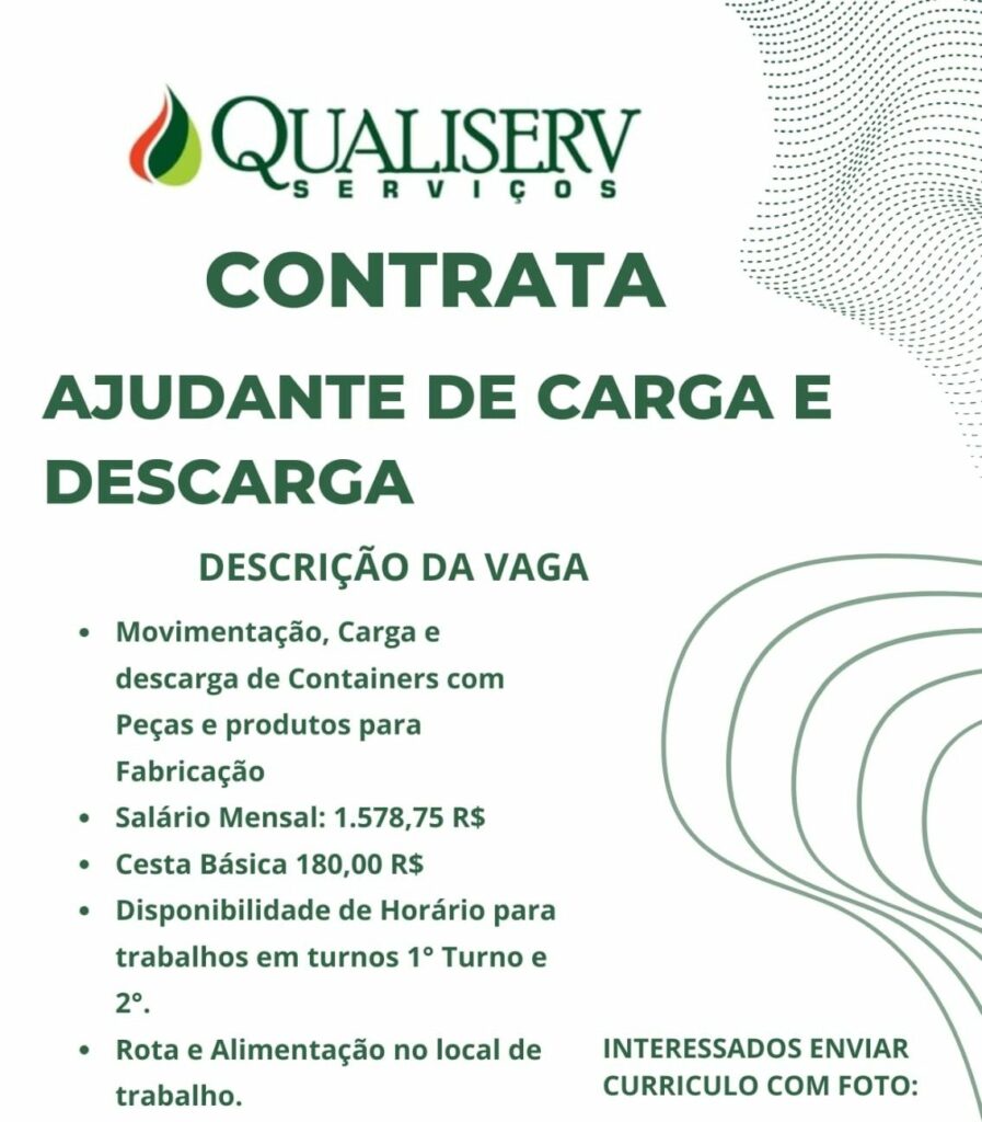 Rh está selecionando Ajudante de carga e descarga; Envie seu currículo!
