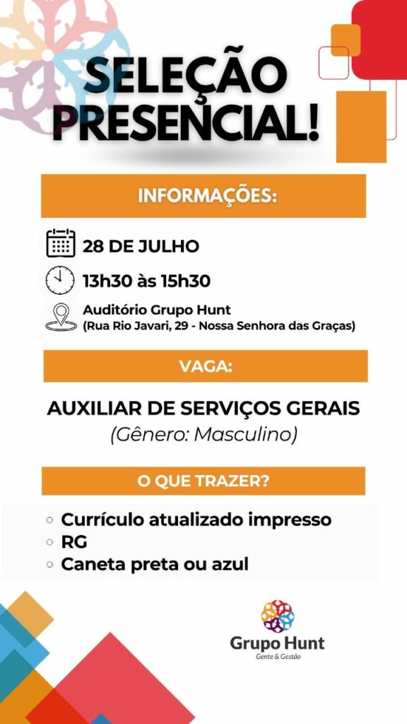 Nunca pague qualquer quantia para participar de um processo para que seja selecionado. Não compre nenhum curso, apostilas ou serviços que prometem participação na seleção ou contratação de uma vaga. E nunca insira dados bancários, cartões ou envie documentos por e-mail ou através de sites que não reconhecem. Não nos responsabilizamos por nenhum tipo de pagamento efetuado.