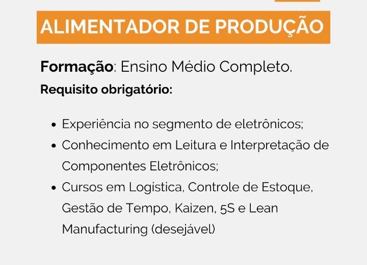 Rh está selecionando Alimentador de Produção, Auxiliar de serviços gerais; Envie seu currículo!
