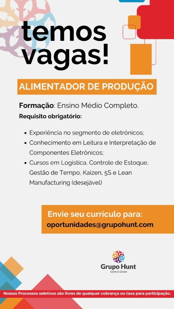 Empresa está selecionando Operador de produção; Envie seu currículo!