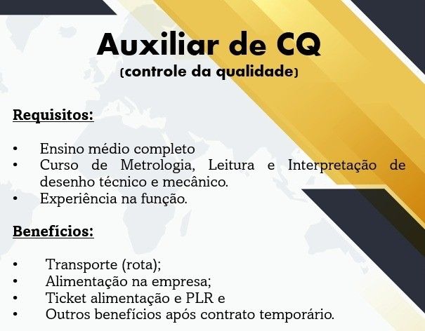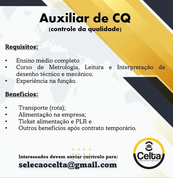 Rh está selecionando Auxiliar de CQ; Envie seu currículo!