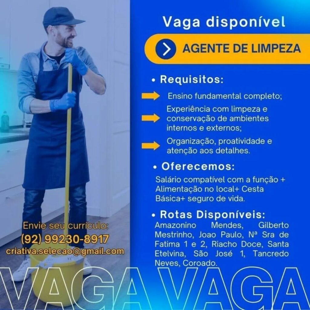 Rh está selecionando Auxiliar de serviços gerais; Envie seu currículo!