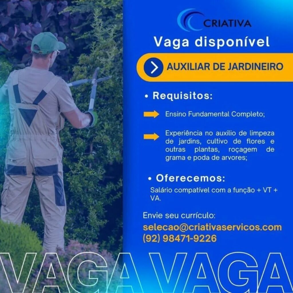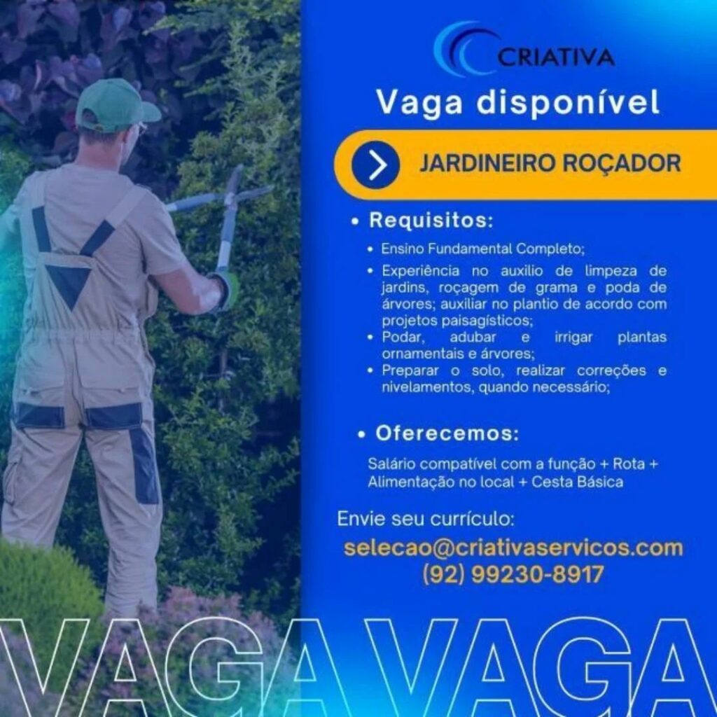 Rh está selecionando Auxiliar de Jardineiro, Jardineiro roçador, Auxiliar de Jardineiro, Encarregado (a) de serviços, Agente de limpeza; Envie seu currículo!