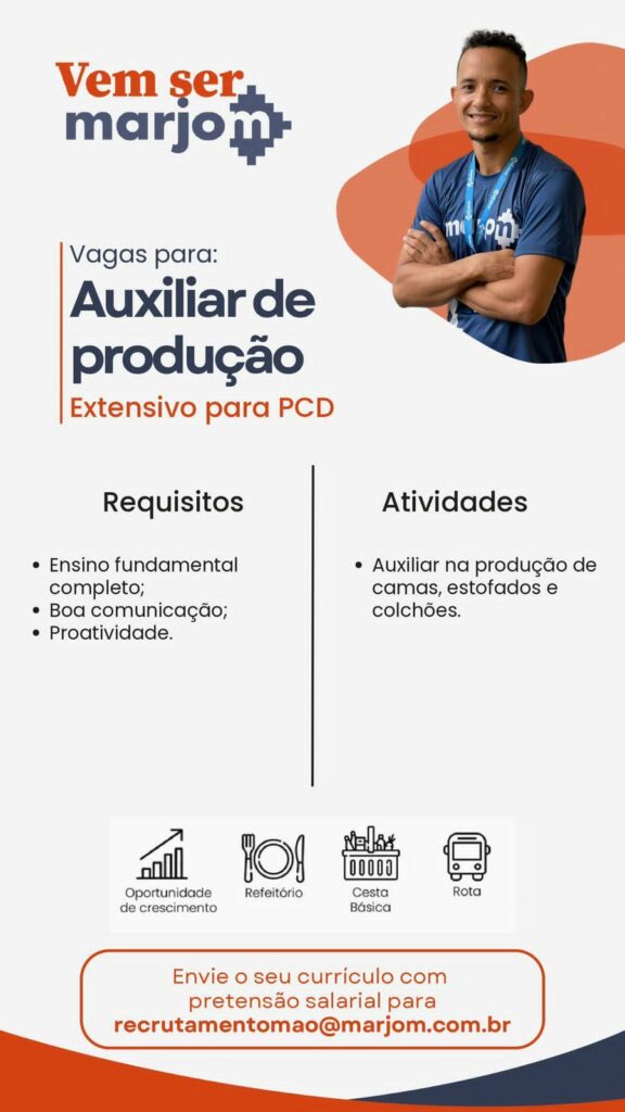 Rh está selecionando Auxiliar de produção; Envie seu currículo!