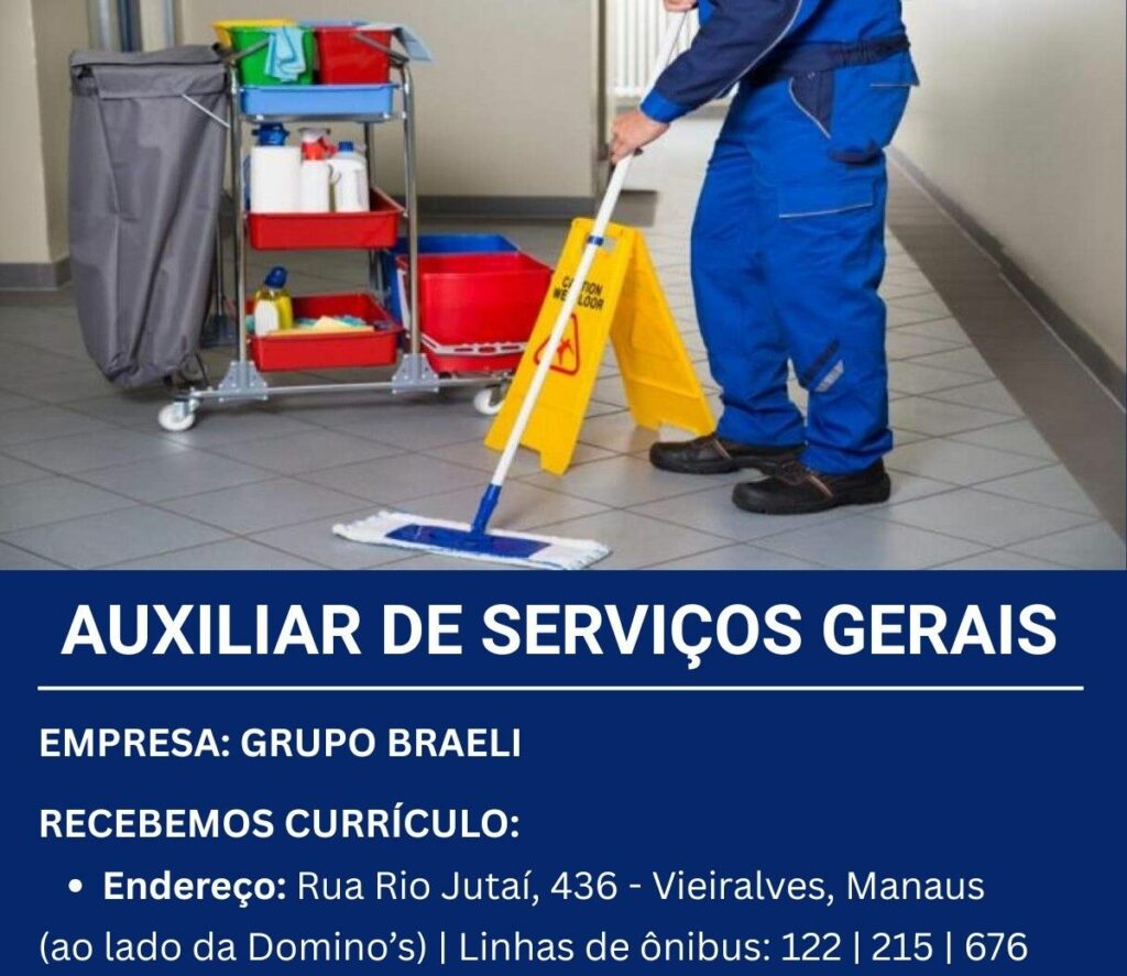 Rh está selecionando Auxiliar de serviços gerais; Envie seu currículo!