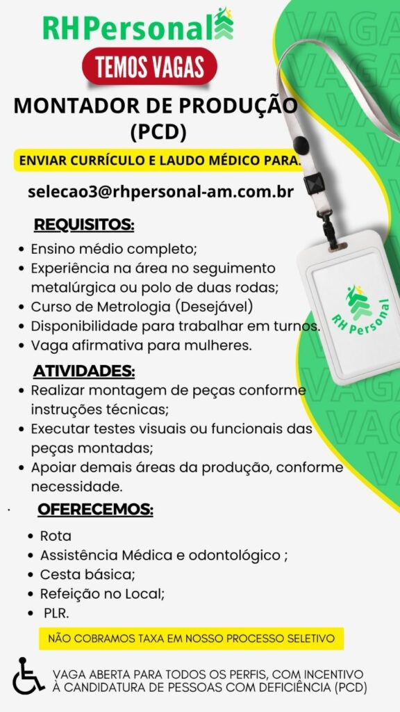 Rh está selecionando para indústria do polo de duas rodas Auxiliar de Produção; Envie seu currículo!
