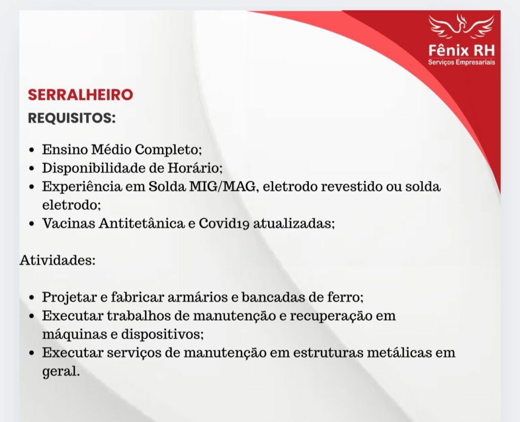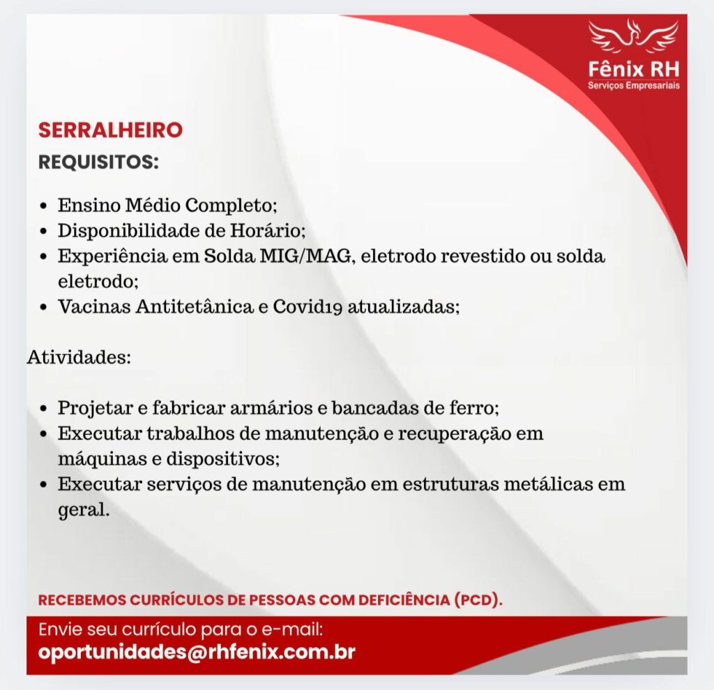 Rh está selecionando Serralheiro; Envie seu currículo!