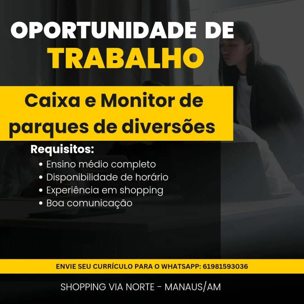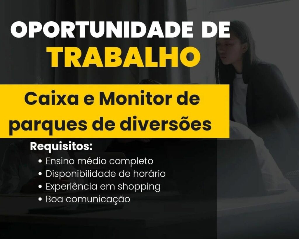 Seleção para seguinte vaga Caixa e monitor de parques de diversões; Envie seu currículo!