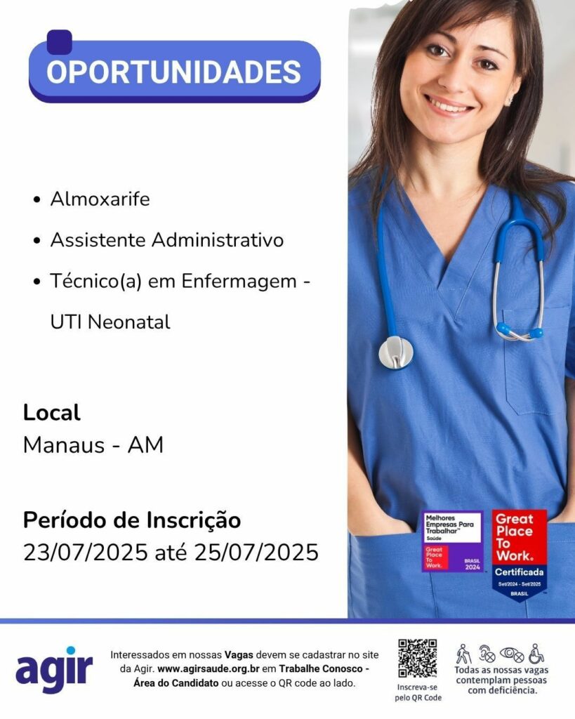 Seleção para seguintes vagas Almoxarife, Assistente administrativo, Técnico (a) de enfermagem UTI neonatal; Envie seu currículo!
