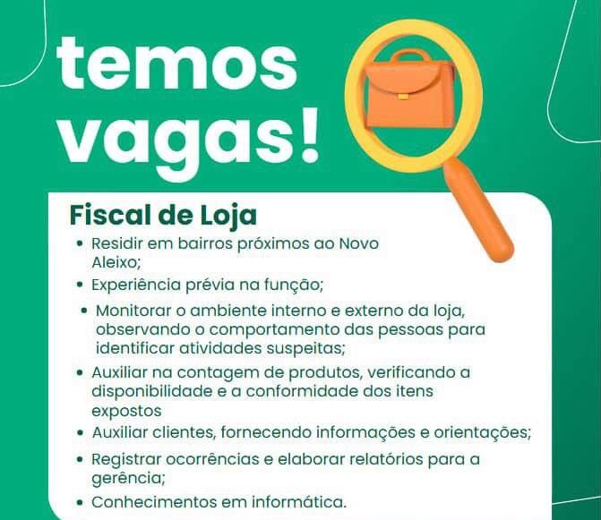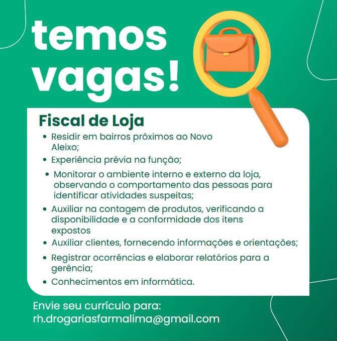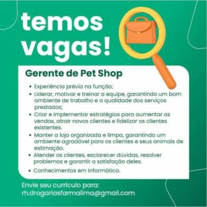 Seleção para seguintes vagas Fiscal de loja, Gerente de pet Shop; Envie seu currículo!