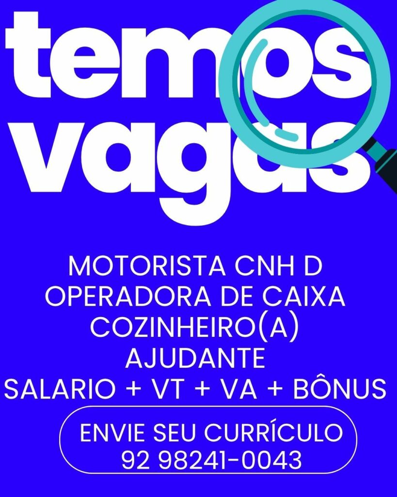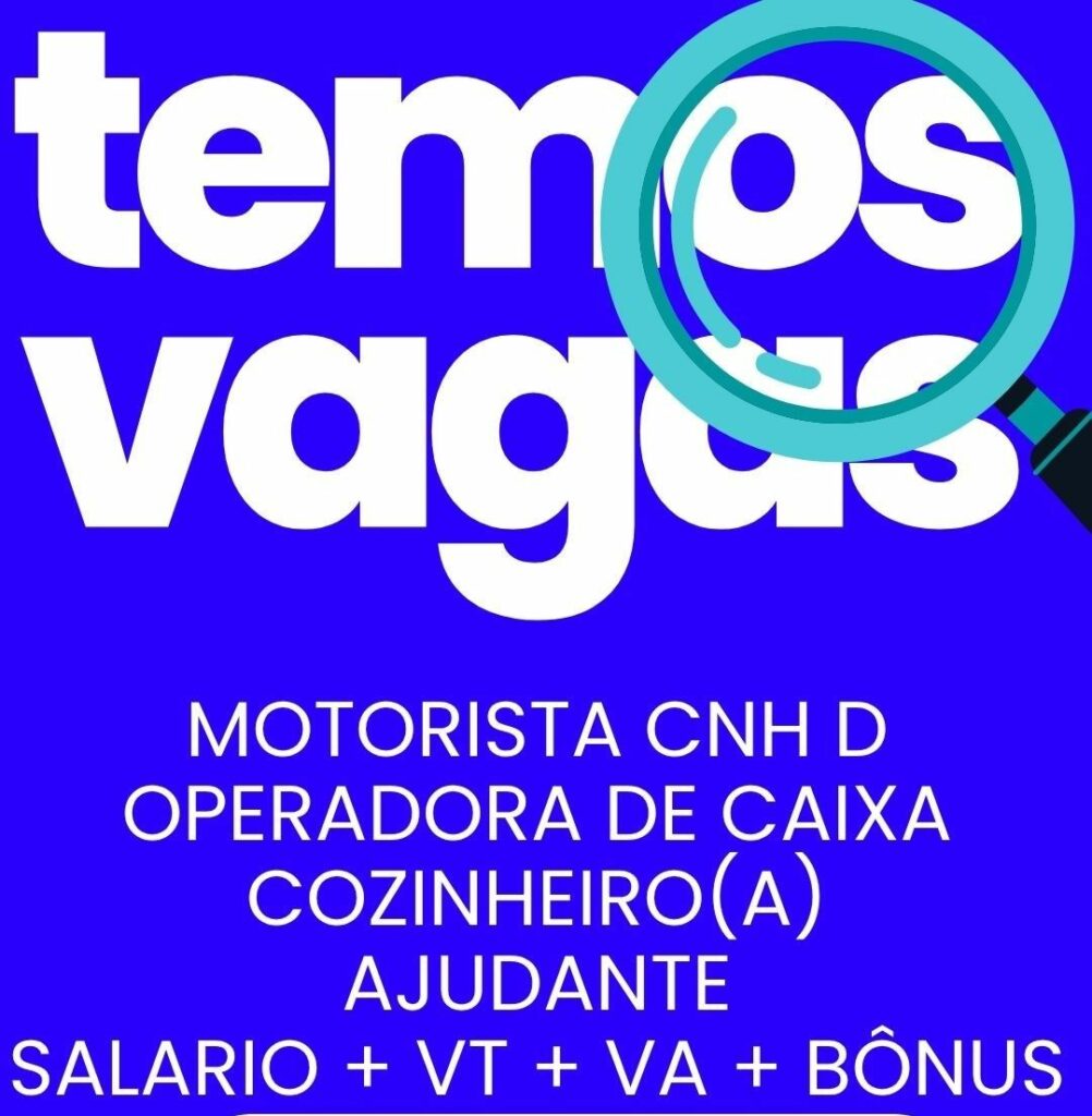 Seleção para seguintes vagas Motorista, Operadora de caixa, Cozinheiro (a), Ajudante; Envie seu currículo!