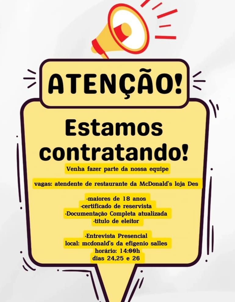 Nunca pague qualquer quantia para participar de um processo para que seja selecionado. Não compre nenhum curso, apostilas ou serviços que prometem participação na seleção ou contratação de uma vaga. E nunca insira dados bancários, cartões ou envie documentos por e-mail ou através de sites que não reconhecem. Não nos responsabilizamos por nenhum tipo de pagamento efetuado.