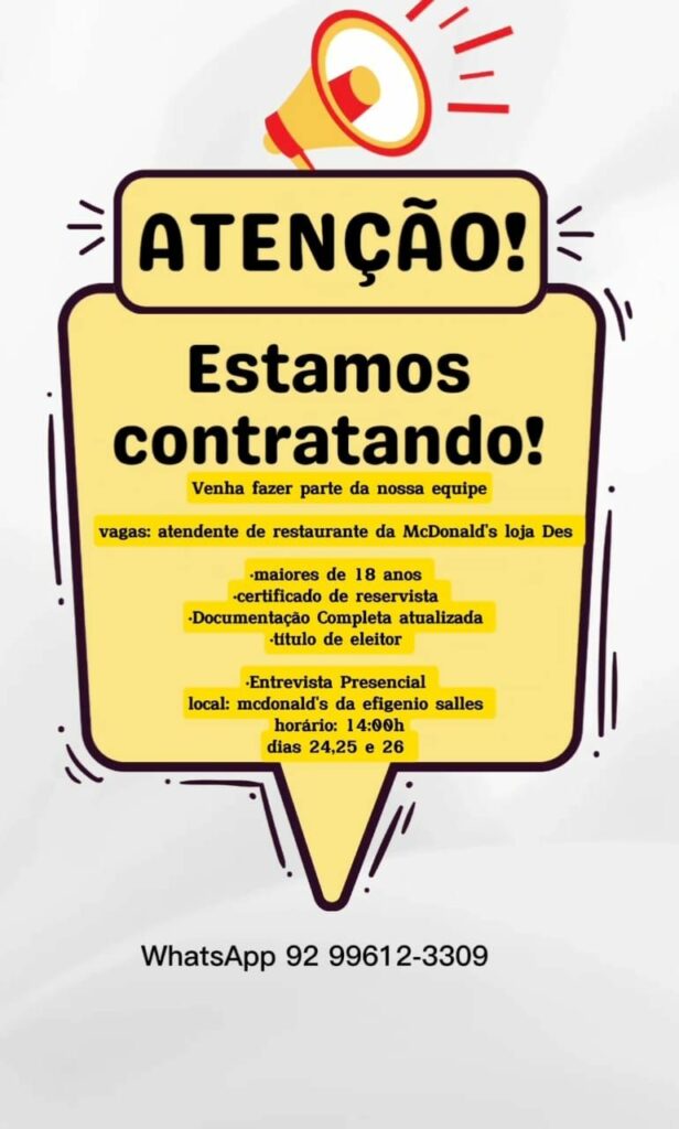 Seleção para vaga de Atendente de restaurante; Envie seu currículo!