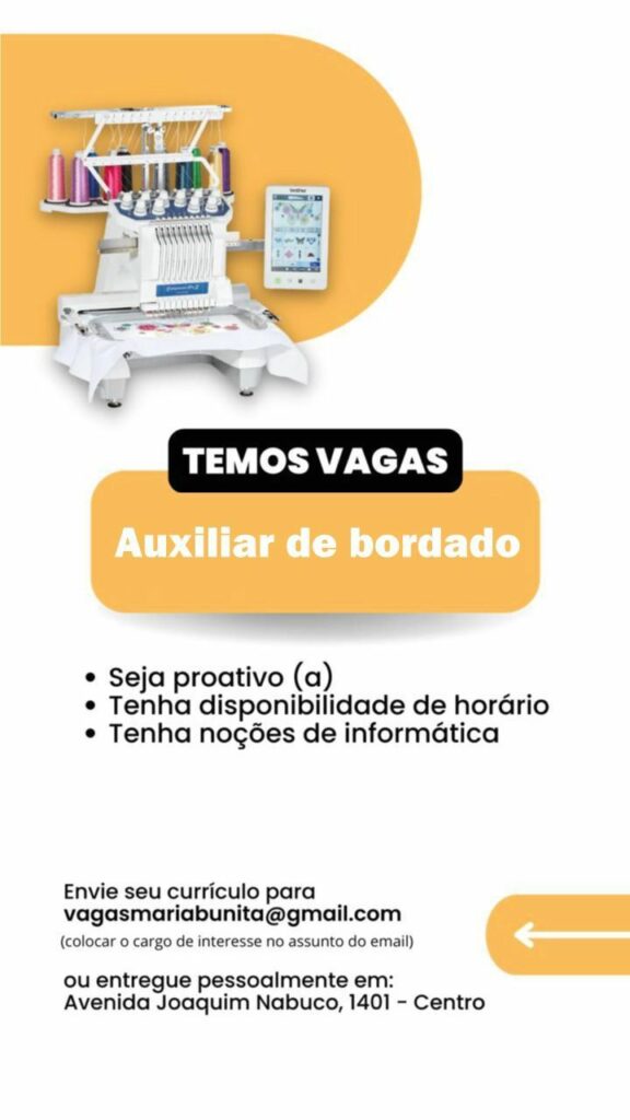 Seleção para vaga de Auxiliar de Bordado; Envie seu currículo!