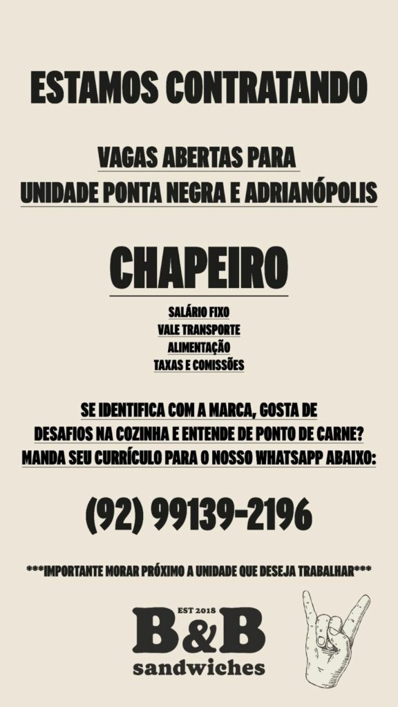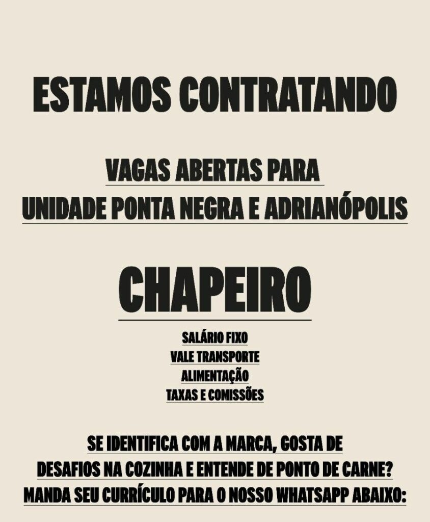 Seleção para vaga de Chapeiro; Envie seu currículo!