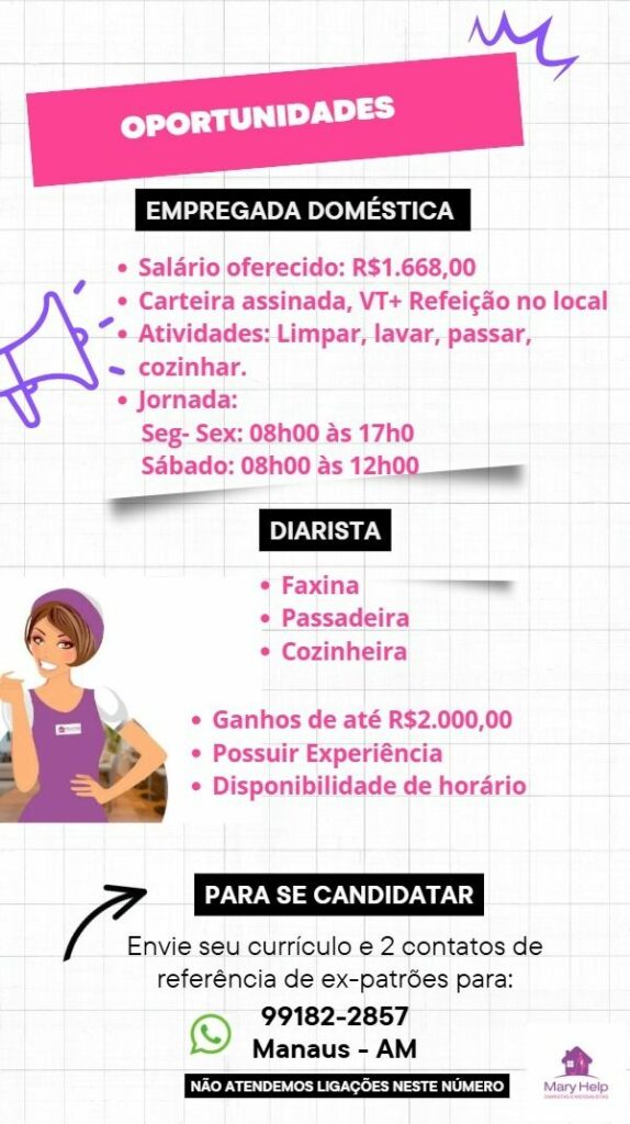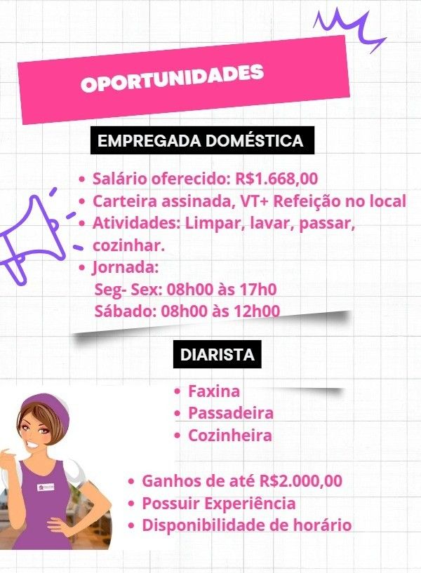 Seleção para vaga de Empregada doméstica; Envie seu currículo!