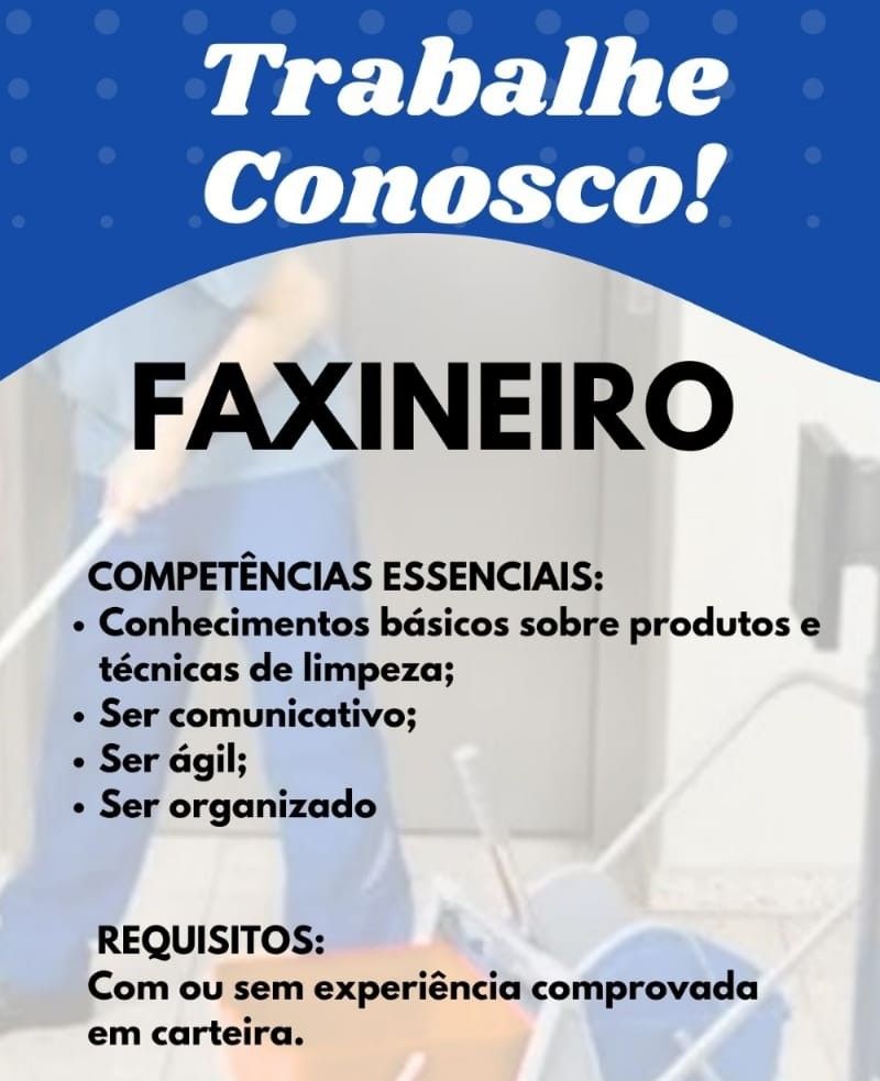 Seleção para vaga de Faxineiro; Envie seu currículo!