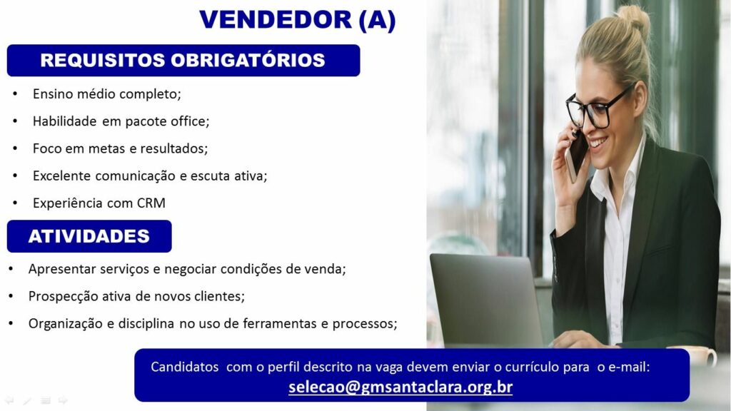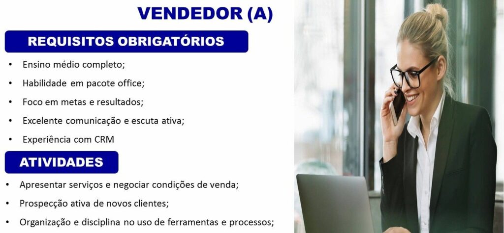 Seleção para vaga de Vendedor (a); Envie seu currículo!