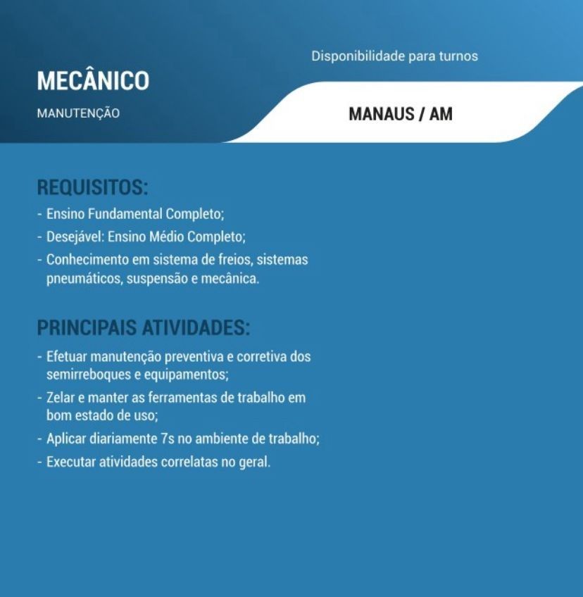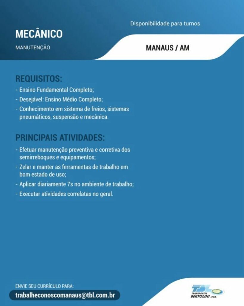 Transportadoras está selecionando Mecânico; Envie seu currículo!