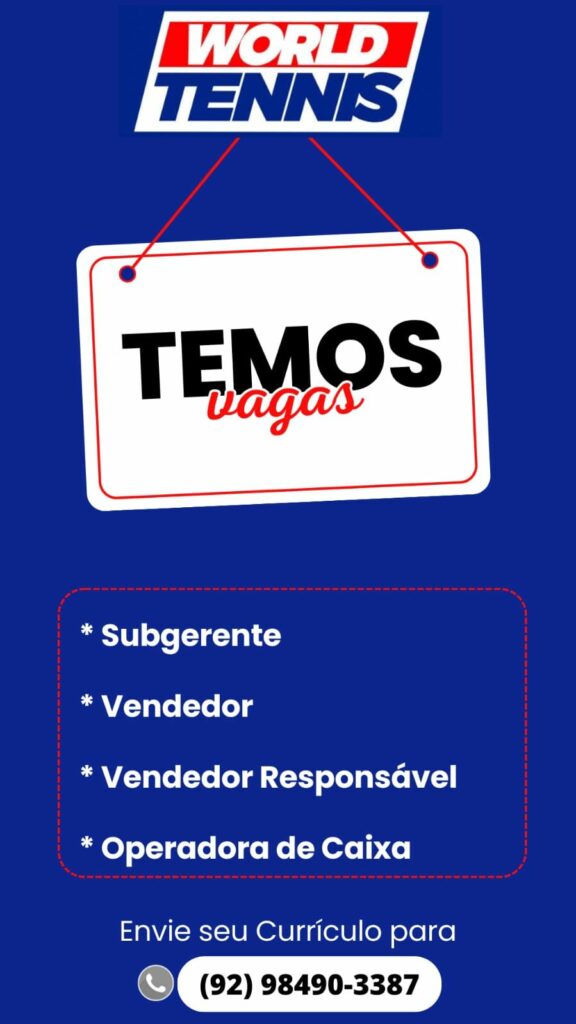 World tennis seleciona Operadora de caixa, Vendedores, Subgerente; Envie seu currículo!