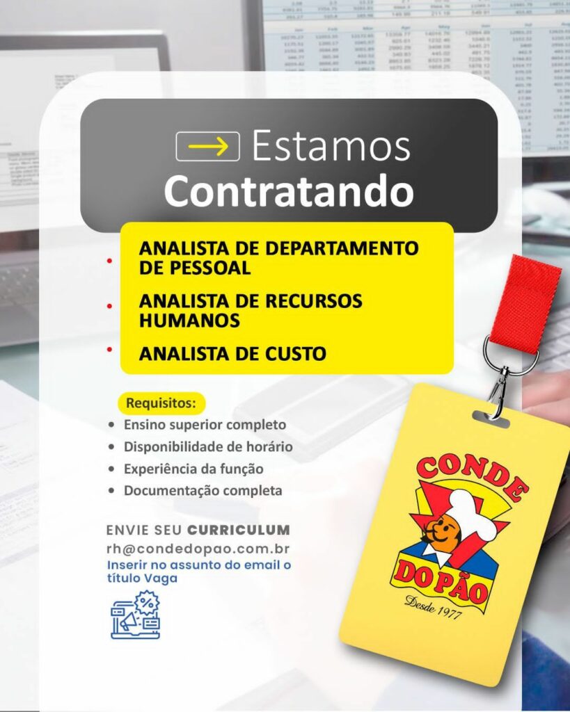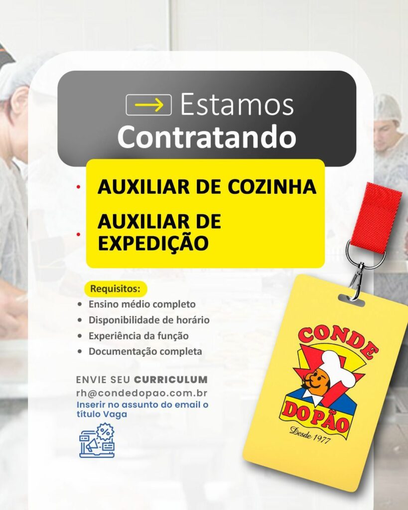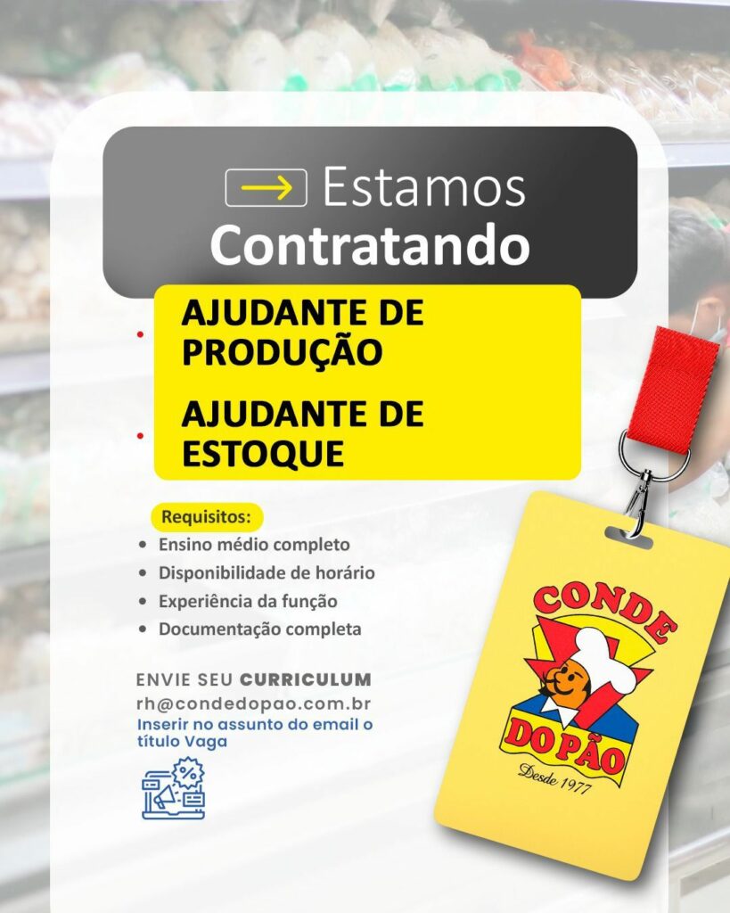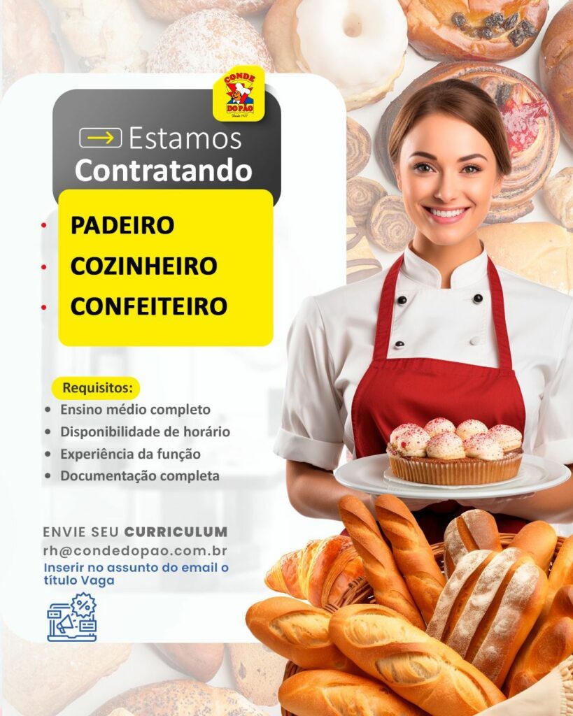 17 cargos estão sendo ofertados pela Conde do pão; Confira
