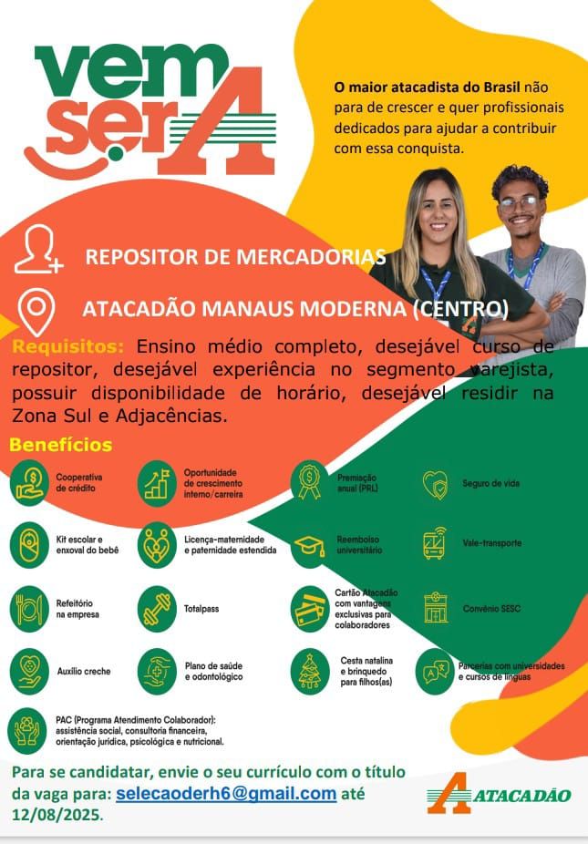 Atacadão Manaus moderna está selecionando para vagas de emprego