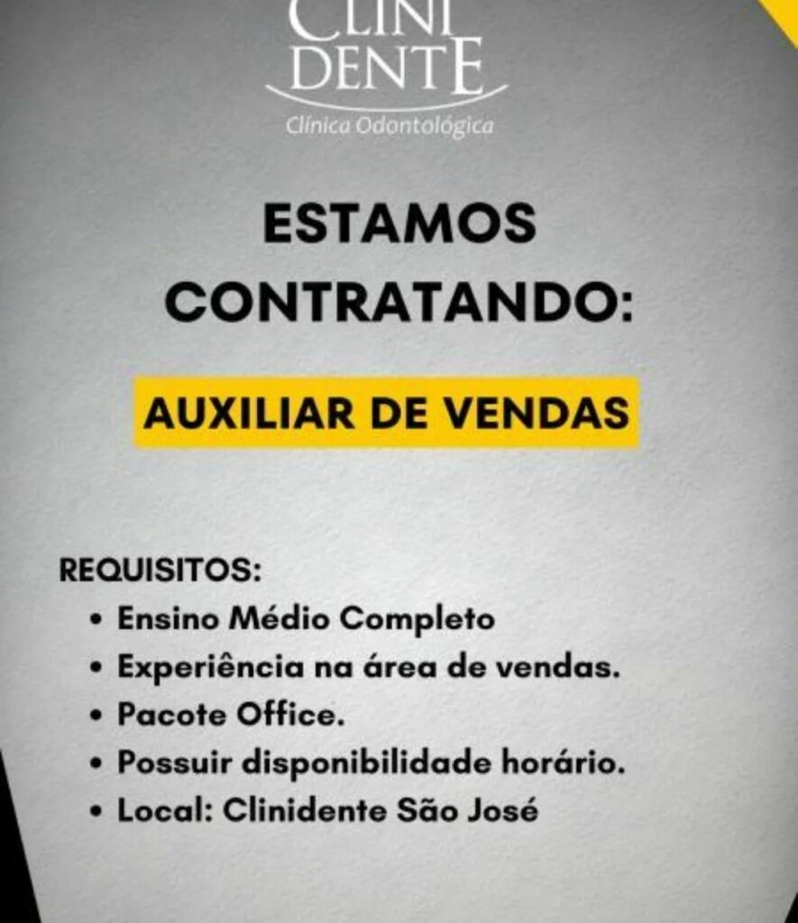 Clínica odontológica seleciona Auxiliar de vendas; Envie seu currículo!