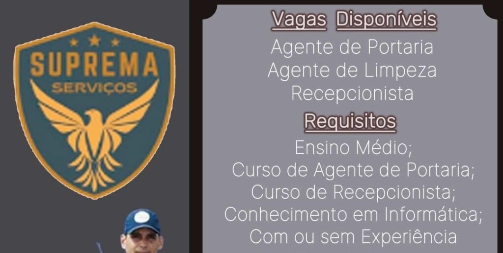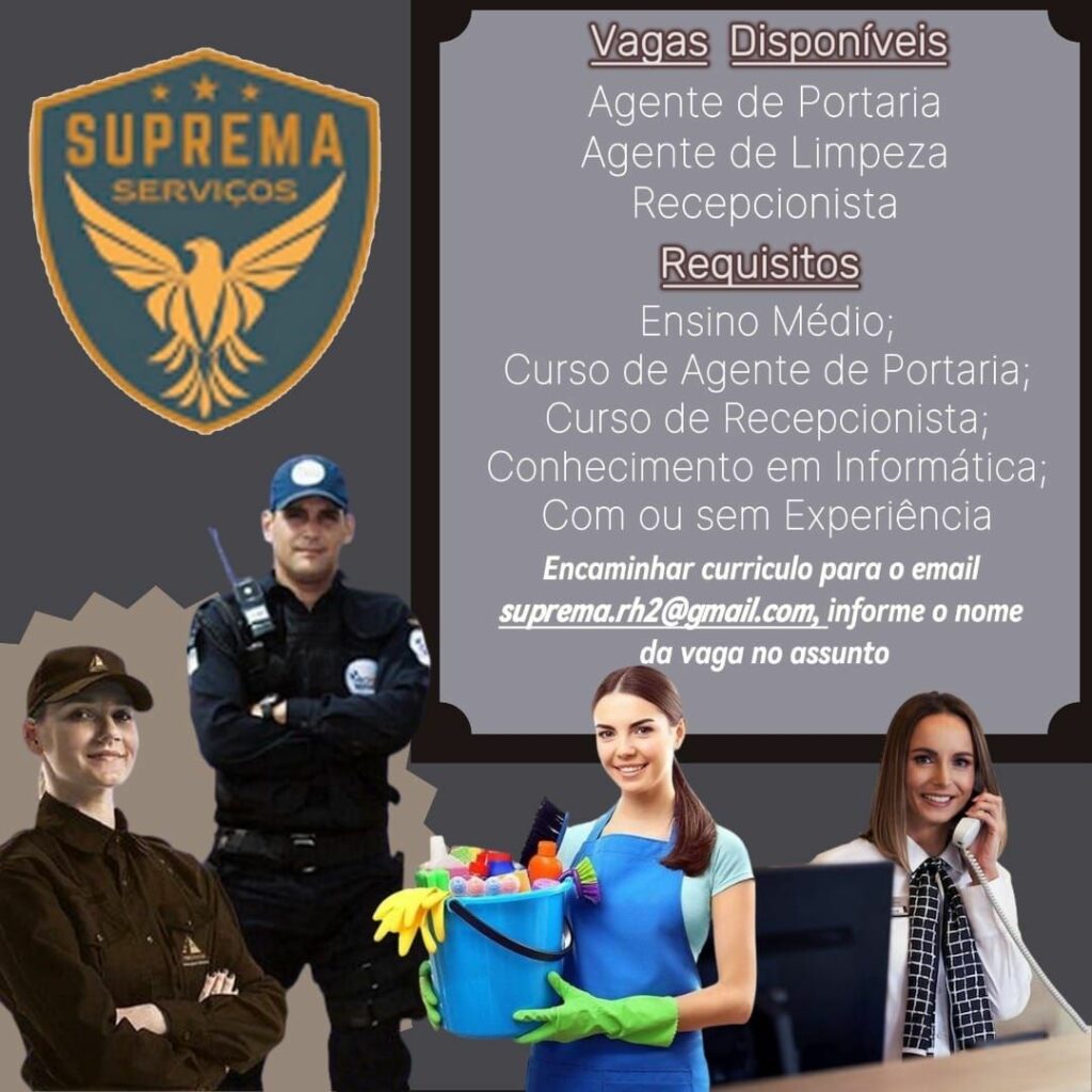 Com ou sem experiência! Seleção para Agente de portaria, Agente de limpeza, Recepcionista; Envie seu currículo!