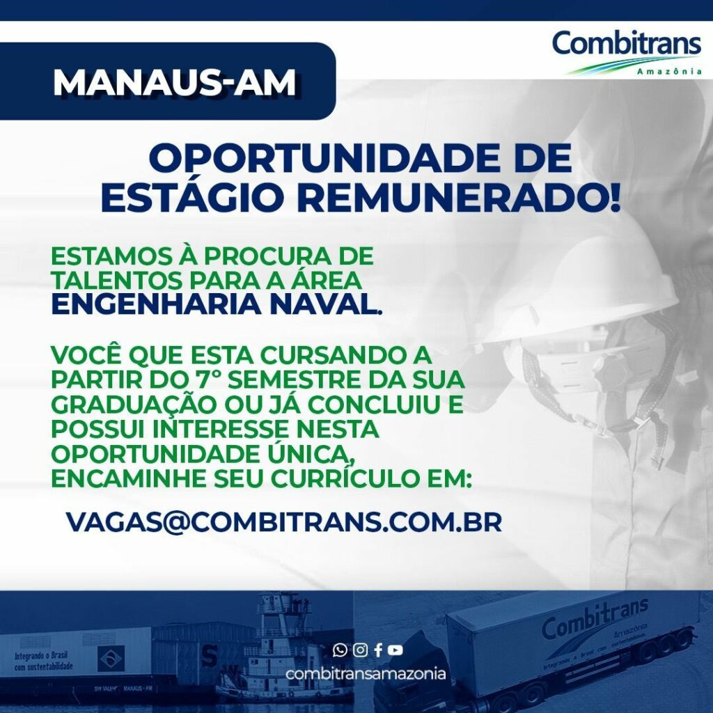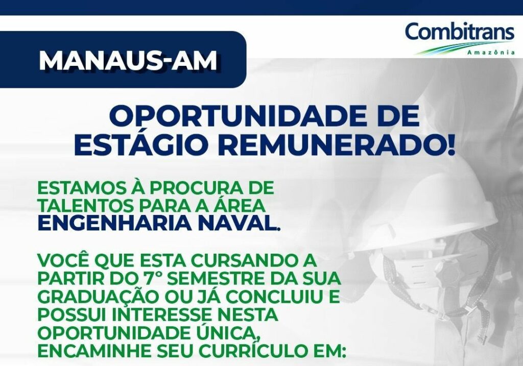 Combitrans está selecionando para área de Engenharia naval; Envie seu currículo!