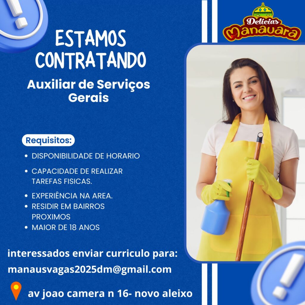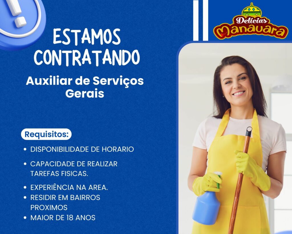 Delícias Manauara seleciona Auxiliar de serviços gerais; Envie seu currículo!
