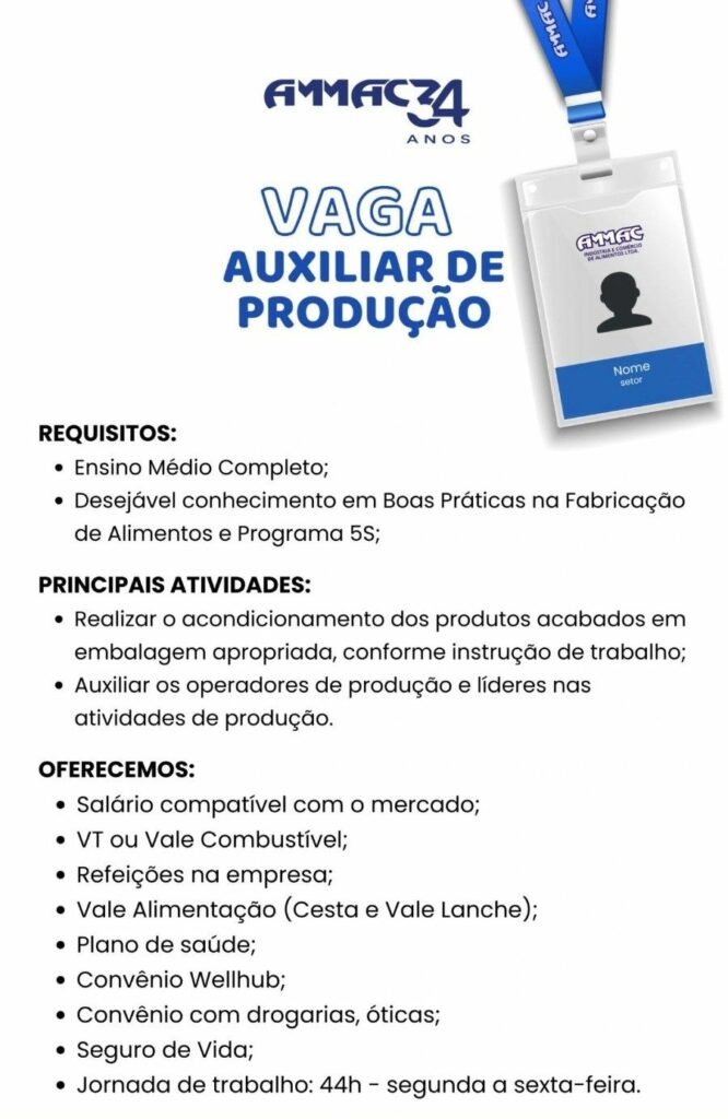 Em Busca Trabalhadores Que Apoie na Produção de Produtos Industriais – Salário de R$ 1.803