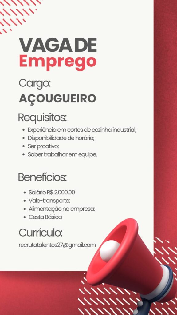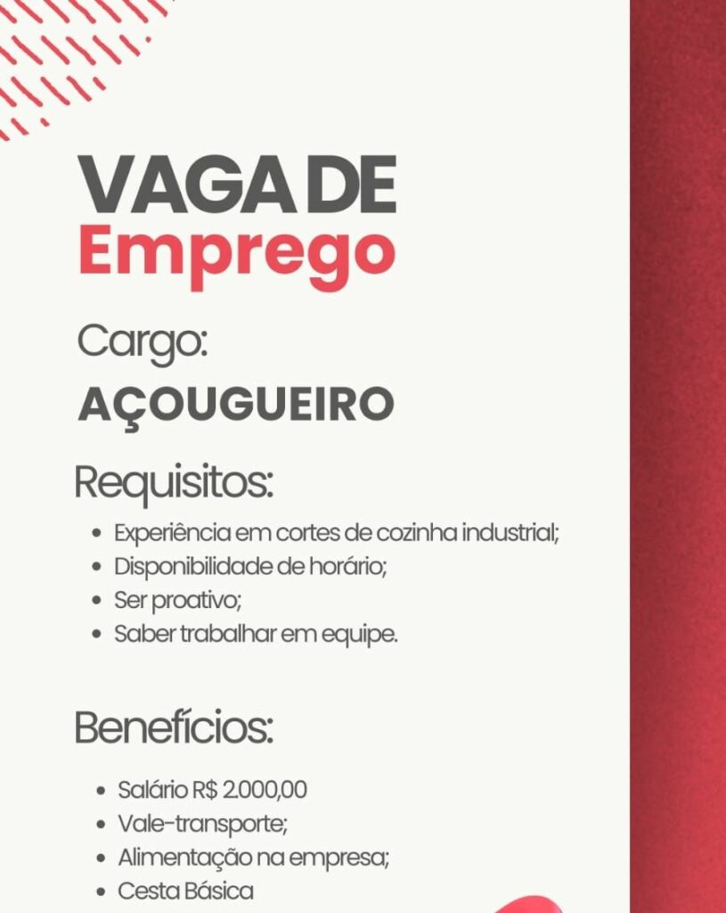 Empresa está selecionando Açougueiro; Envie seu currículo!