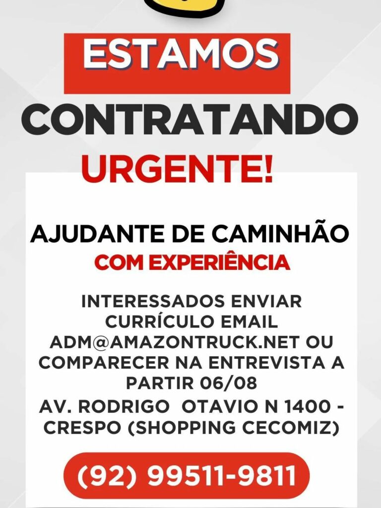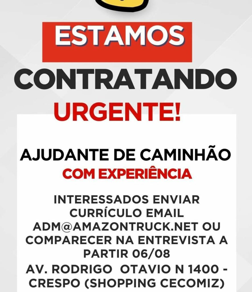 Empresa está selecionando Ajudante de caminhão; Envie seu currículo!
