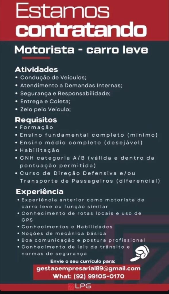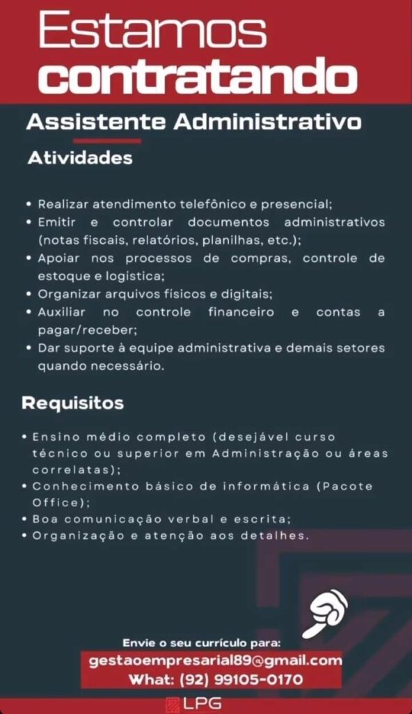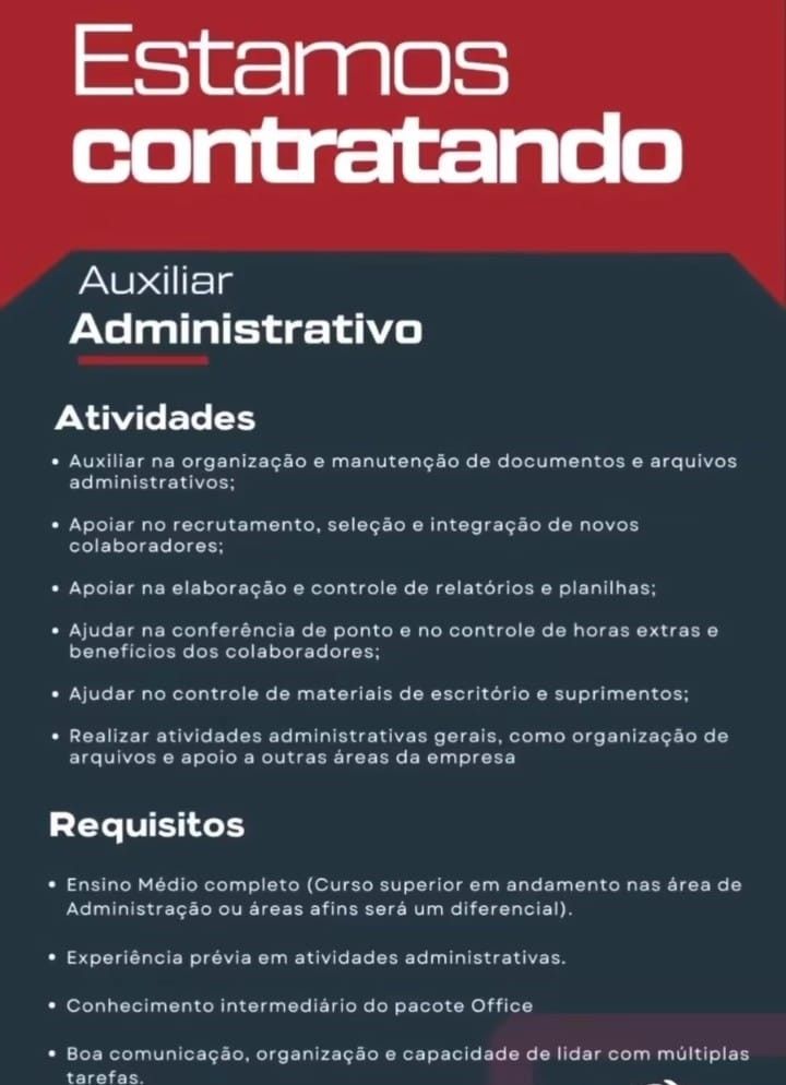 Empresa está selecionando Almoxarife, Motorista carro leve, Assistente Administrativo, Auxiliar administrativo; Envie seu currículo!