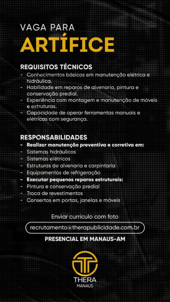 Eletricista, Serralheiro e mais 110 vagas de emprego no Sine Amazonas