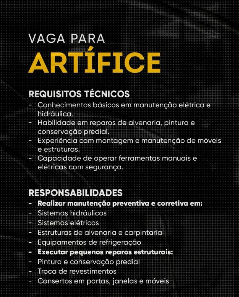 O processo seletivo para esta(s) vaga(s) não cobra absolutamente nada pela sua candidatura. Portanto, jamais aceite qualquer tipo de cobrança para cadastrar seu currículo.