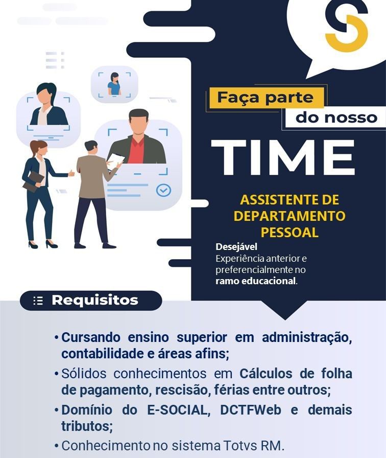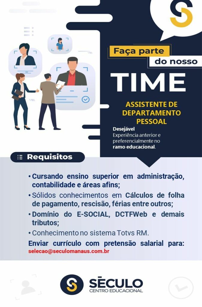 Empresa está selecionando Assistente de departamento pessoal; Envie seu currículo!